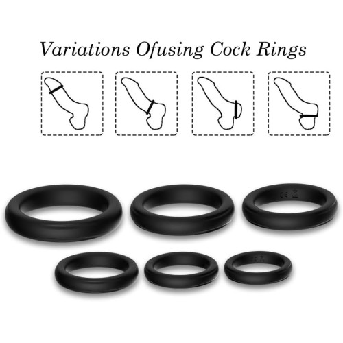 This Cockring Set is ideal for any man who wants to experiment different ideas; Six penis rings in different inner diameter options. No features and or options need to be descriped here, just six (6) high quality silcione, soft and stretchy cockrings in different size options to give your sexual life the boost you are waiting for.